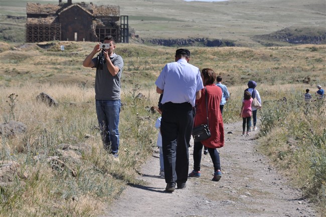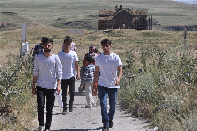 Medeniyetler beşiği Ani’de yoğunluk yaşanıyor. Sıcak havaya aldırış etmeyen misafirler, saatlerce Ani’yi geziyor.