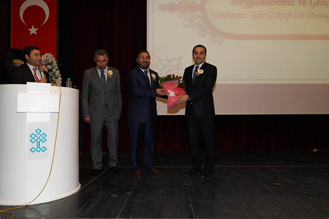 Kars İl Müftüsü Yusuf Eviş ve Iğdır İl Müftüsü Mustafa Tekin’in günün anlam ve önemine dair yaptığı konuşmalar ile sona eren programda, Mevlid-i Nebi Haftası kapsamında Vali Türker Öksüz’e çiçek takdim edildi.