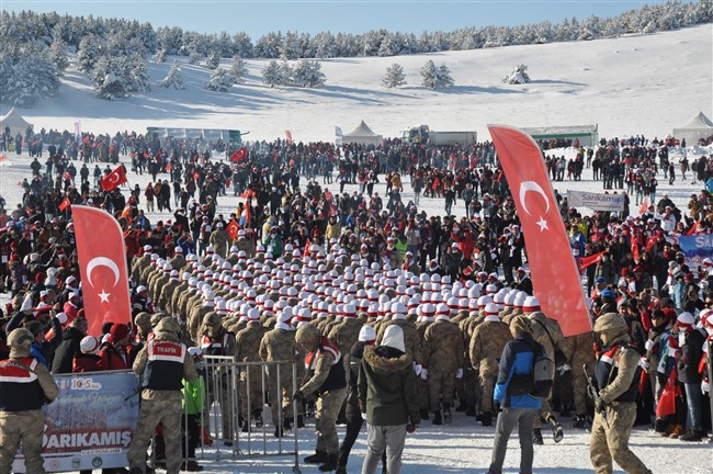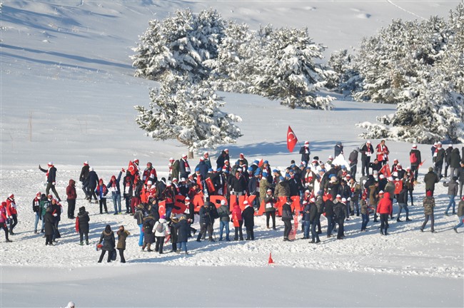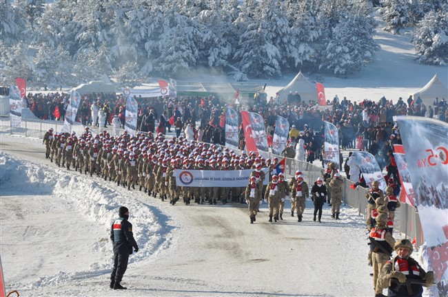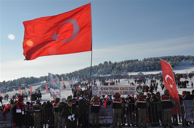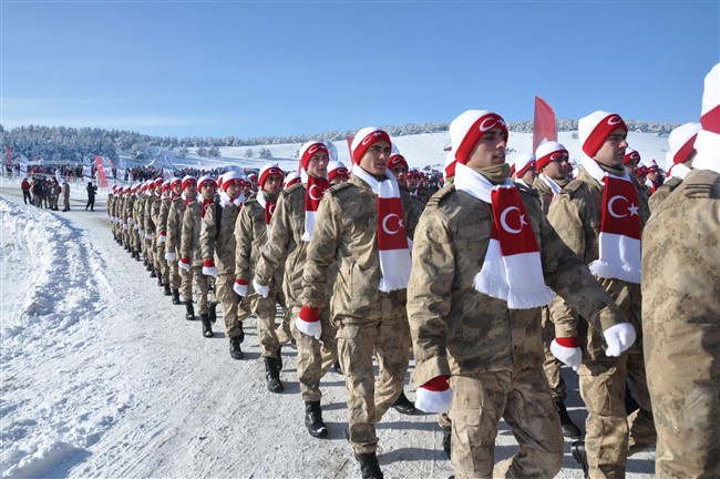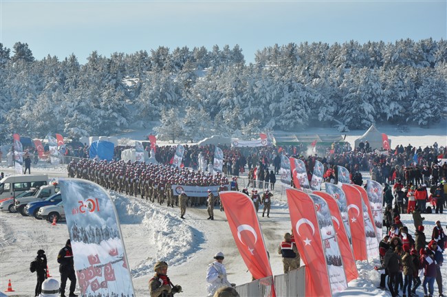 Türkiye’nin dört bir yanından Sarıkamış’a gelen katılımcılar sabahın erken saatlerinde, “Gençlik Şühedanın İzinde” temasıyla düzenlenen “Türkiye Şehitleriyle Yürüyor” yürüyüşüne katılmak üzere, 90 bin Mehmetçiğin donarak şehit düştüğü Soğanlı ve Allahuekber Dağları arasındaki Kızılçubuk Zirvesi’nde eksi 10 derece soğuk havaya rağmen toplanmaya başladı.
