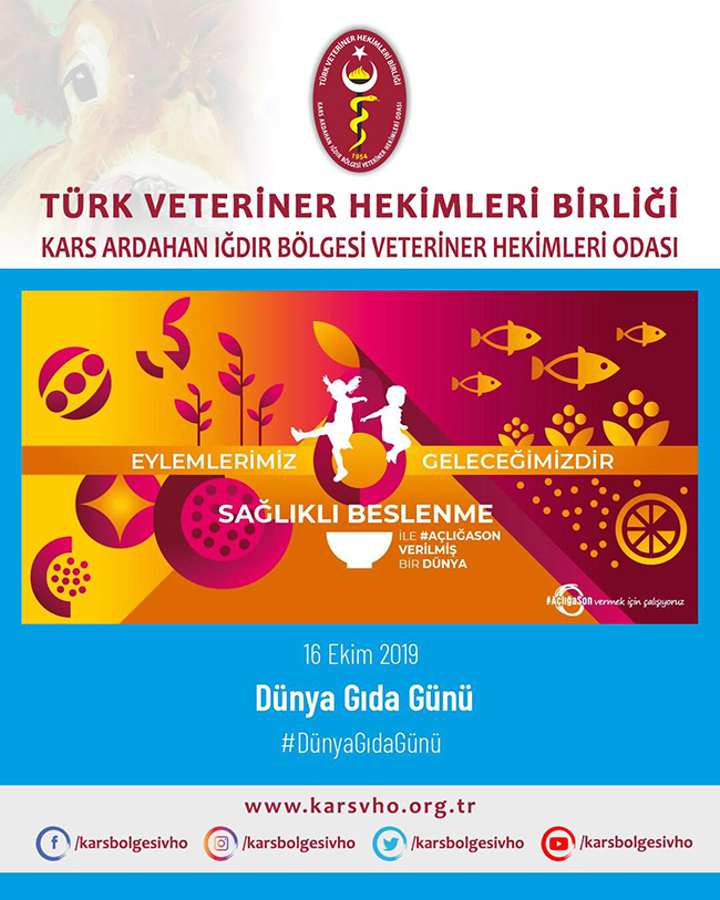 Kars Bölgesi Veteriner Hekimleri Odası Başkanı Ercan Ödül “16 Ekim Dünya Gıda Günü” ile ilgili olarak yaptığı açıklamada, FAO tarafından Dünya Gıda Gününün 2019 yılı temasının “Sağlıklı Beslenme ile Açlığa Son Verilmiş Bir Dünya” olduğunu söyledi.