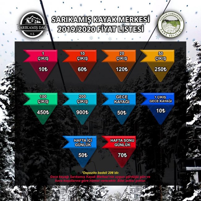 Sarıkamış Dağ A.Ş 2019/2020 kayak sezonu SKPASS fiyatları belli oldu.