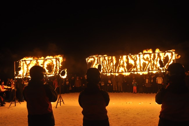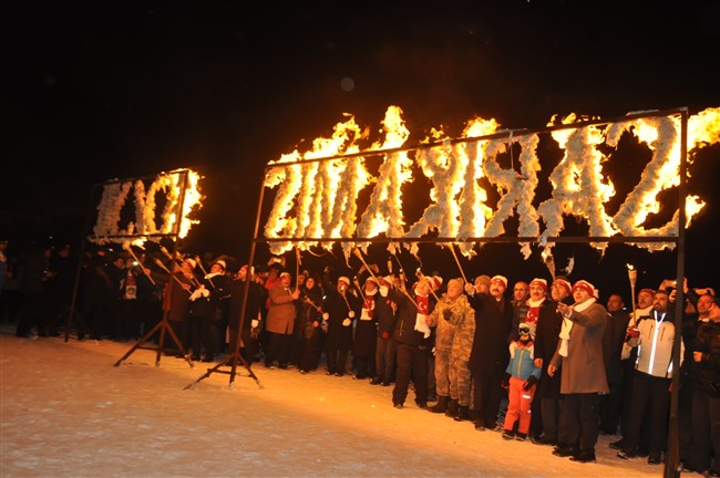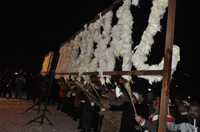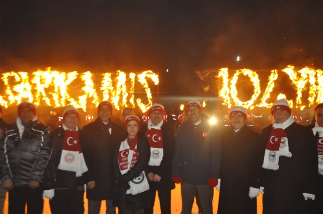 Sarıkamış Cıbıltepe Kayak Merkezi’nde düzenlenen etkinlikte JAK timleri ellerinde yanan meşaleler ile zirveden aşağıya kayarak indi. Bakan Kasapoğlu protokol üyeleri ile birlikte kayak merkezinin pistinde demirle yazılan ve gazlı bezlerin sarılı olduğu ‘Sarıkamış 104. Yılı’ yazısını meşalelerle yaktı.