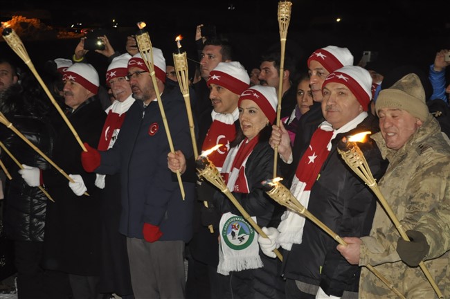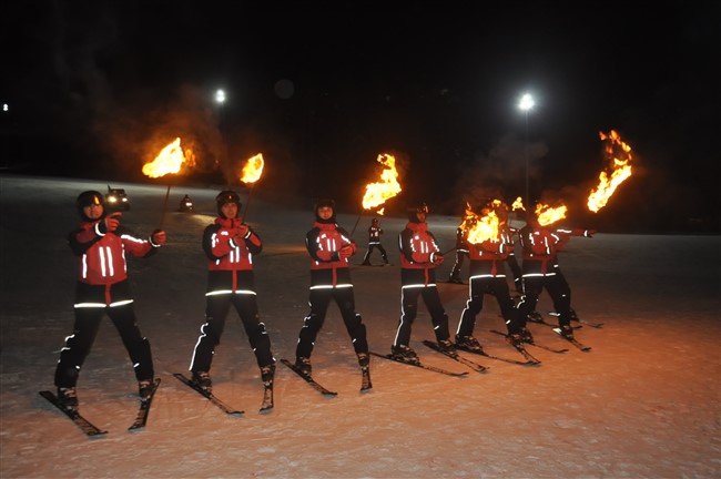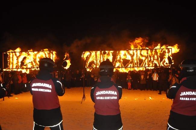 Sarıkamış Şehitleri anısına Jandarmadan meşaleli kayak gösterisi
