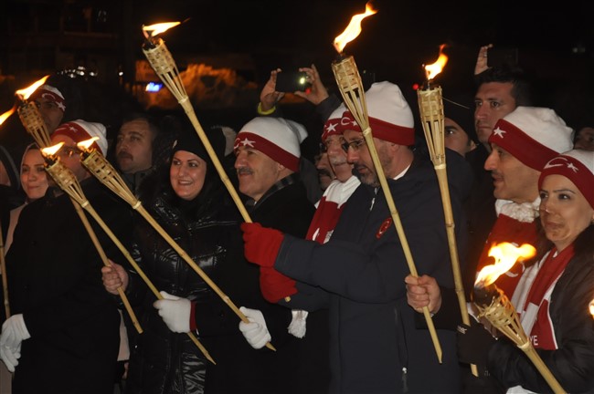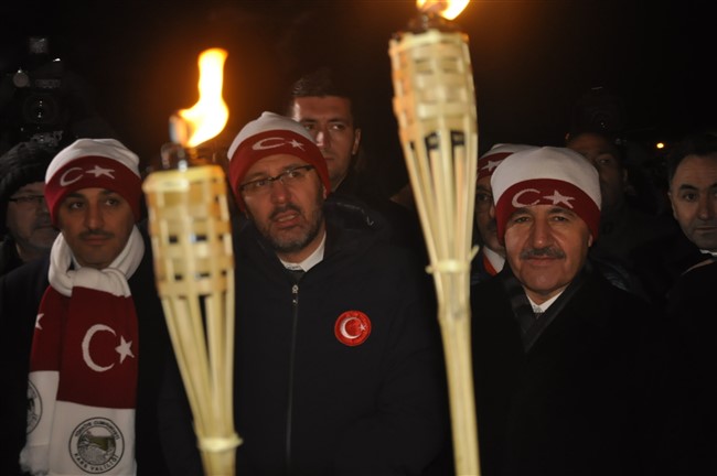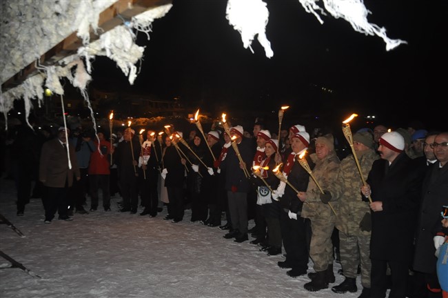 Gençlik ve Spor Bakanı Mehmet Muharrem Kasapoğlu, JAK timlerince Sarıkamış şehitleri anısına düzenlenen meşaleli kayak gösterisini izledi.