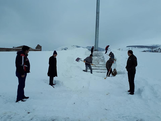Sarıkamış Belediye Başkanı Göksal Toksoy çalışmaları yerinde inceledi. Ay Yıldız tören alanında kar temizleme çalışmaları bitti. Allahuekber Dağları'nda şehit olan 90 bin askerin anısını yaşatmak için 5 kilometre yürüyüş yapılacak.