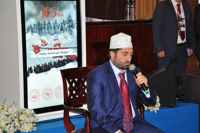 Programda bir konuşma yapan Aile, Çalışma ve Sosyal Hizmetler Bakan Yardımcısı Ahmet Koca, “Sarıkamış harekâtının 105. yıl dönümü münasebetiyle, başta Sarıkamış’ta vatanı için can veren kahraman askerlerimiz olmak üzere tüm şehitlerimize ve ebediyete intikal etmiş kahraman gazilerimize Yüce Allahtan rahmet diliyorum. 1914 yılının Aralık ayında eksi kırk derecede her şeyi boğan soğuk, buz gibi havada askerlerimiz can verip cennete yürürken, hayat bulan, yeşeren, tüm vatan sathına yayılan ve onlardan bize kalan şey vatan sevgisi ve millet sevdası olmuştur. Tarihi kahramanlık destanlarıyla dolu bu necip millet, söz konusu olan vatan ise tıpkı ecdadının da yaptığı gibi hem serden hem yardan geçmiş ve mukaddesatı için gözünü kırpmadan ya şehadet şerbetini içmiş ya da gazilik mertebesine ulaşmıştır. Aradan geçen bir asırdan fazla zamana rağmen, Çanakkale’de, Sarıkamış’ta yaşanan olaylar bugün farklı ülkeler üzerinden bizlere tekrar yaşatılmak istenmektedir. Doğu Akdeniz’de Yunanistan, Kıbrıs Rum Kesimi, Mısır, İsrail, İtalya, Fransa’nın hasmane tutumları, Suriye’de tezgâhlanan oyunlar, 15 Temmuzda yapılan hain kalkışma bize gösteriyor ki her ne kadar piyonlar değişse de Türk milletinin düşmanları bu cennet vatanı parçalamak için boş durmuyorlar ve durmayacaklar.” dedi.