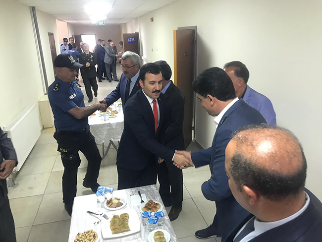 Törenin ardından protokol mensupları, İlçe Emniyet Müdürlüğü ile Jandarma Komutanlığını gezerek buradaki polis ve askerlerin bayramını kutladı.
