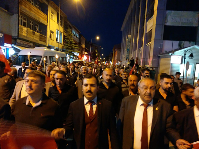 Sarıkamış Kaymakamlığı, Sarıkamış Belediyesi ve İlçe Milli Eğitim Müdürlüğü tarafından organize edilen 15 Temmuz Şehitlerini Anma Demokrasi ve Milli Birlik Günü programı kapsamında düzenlenen etkinlikte, ilçe protokolü ve vatandaşlar meşalelerle yaklaşık 2 kilometre omuz omuza tekbir getirerek yürüdü.