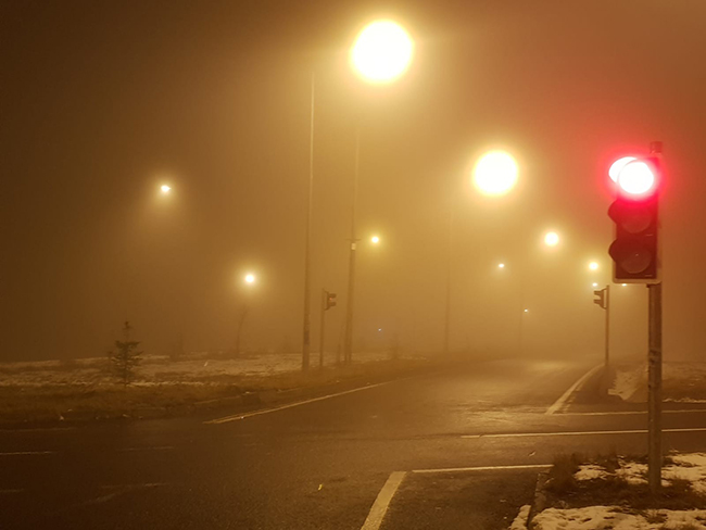 Sarıkamış’ta sabaha doğru etkili olan sis, görüş mesafesini zaman zaman 5 metreye düşürdü.