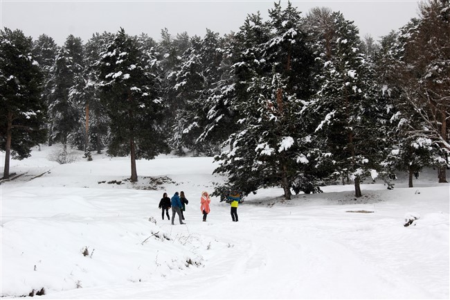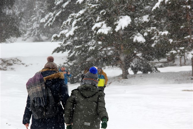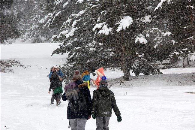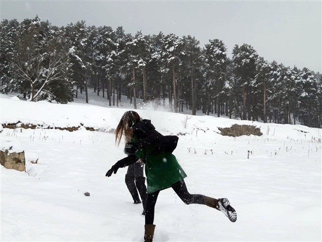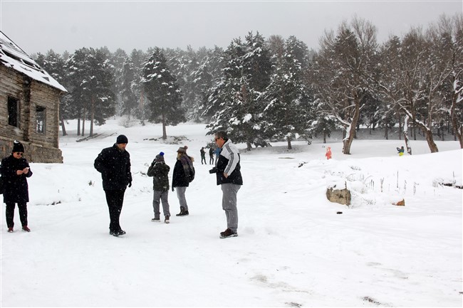 Katerina Köşkünü ziyarete gelen turistler ise kartopu oynayarak etrafı sarıçam ormanlarıyla kaplı muhteşem kış manzarasının seyrine doydu.