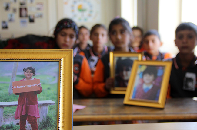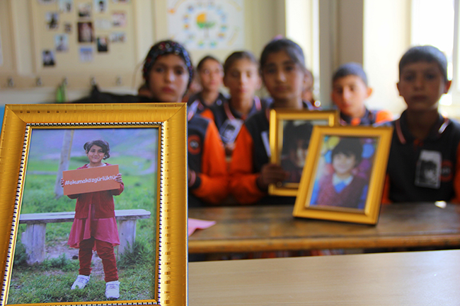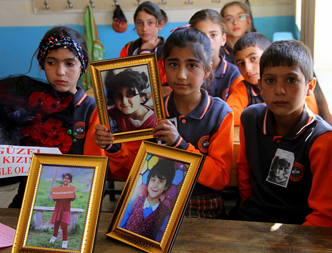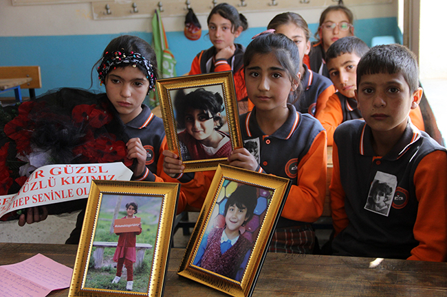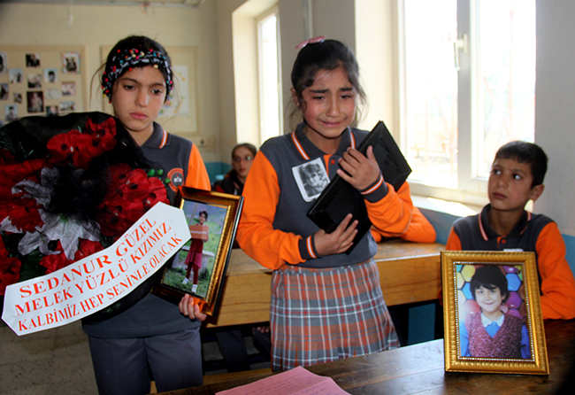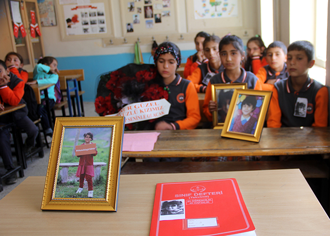 Kağızman ilçesi Paslı köyünde Esin Çağdaş İlk ve Ortaokulunda öğrenim gören ve pazar günü ölü bulunan Sedanur Güzel'in sırasına fotoğrafları bırakıldı.