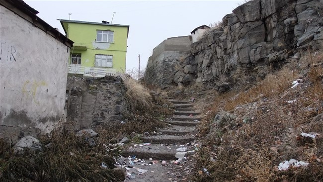Kars Fevzi Çakmak Mahallesin Rauf Denktaş caddesi üzerinde bulunan metruk binalar ve heyelanlı bölgenin akıbeti yılan hikayesine döndü.