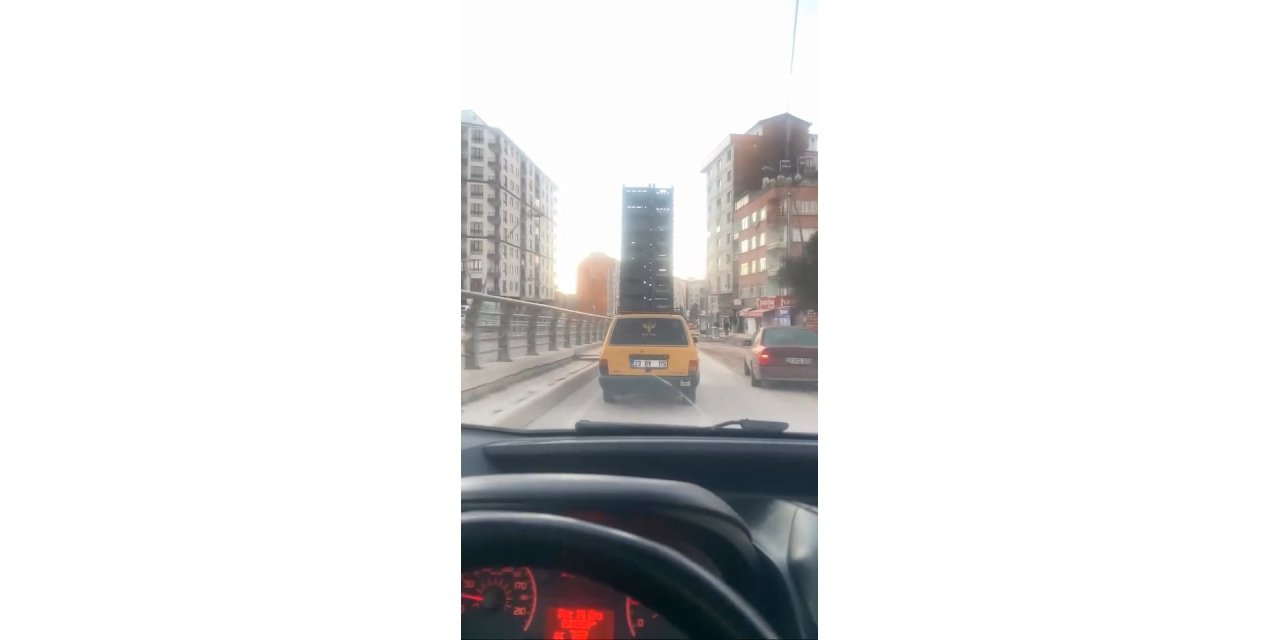 Otomobilin tavanında sebze kasaları taşıdı, trafiği tehlikeye attı