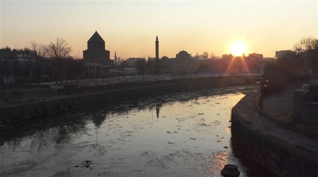 Sibirya soğuklarının etkili olduğu Kars'ta sabah erken saatlerde termometreler eksi 11'i gösterdi. Evlerinin camlarının buz tuttuğu kentte Kars Çayı'ndan adeta buz aktı.