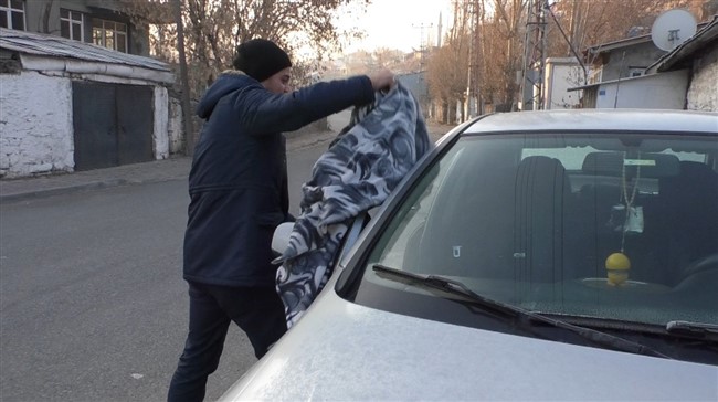 Sibirya soğukları Kars'ta hüküm sürüyor. Hava sıcaklığının gece eksi 15'lere düştüğü kentte vatandaşlar, araçlarının üzerine halı, kilim ve battaniye örterek soğuktan korumaya çalışıyor. Soğuk havanın etkili kentte vatandaşlar soğuktan sıkı sıkı giyinerek sokağa çıktı.