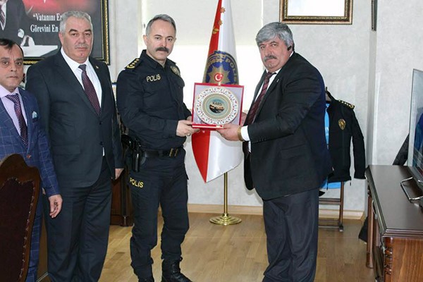 Ziyarette, ASKF Başkanı Taş, Emniyet Müdürü Bitirik’e şilt takdim etti.