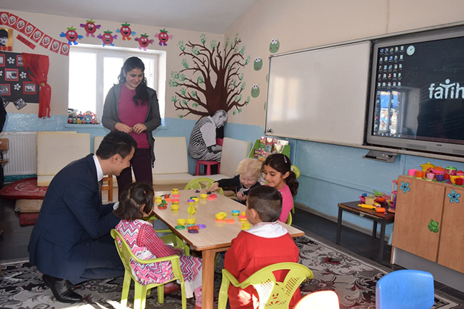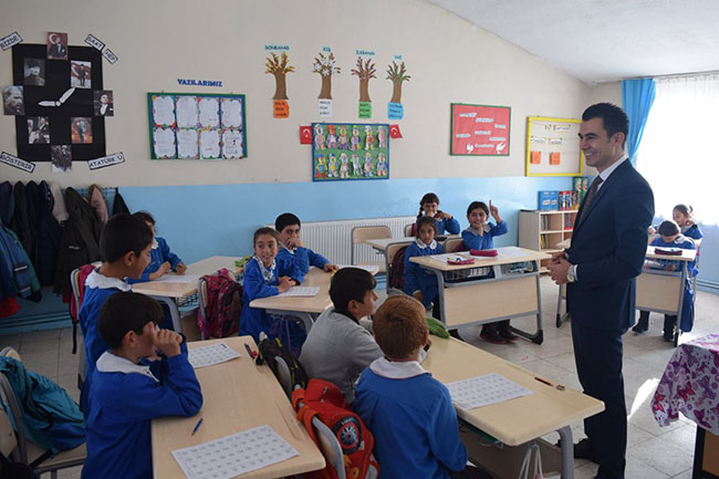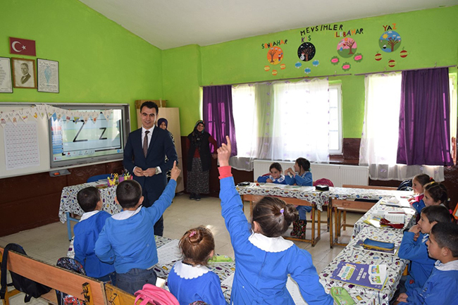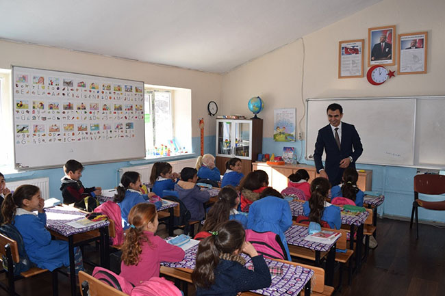 Köy okullarında eğitim-öğretimi yerinde görmek ve ihtiyaçları tespit etmek amacıyla ziyaret gerçekleştiren Kaymakam Hamza İnam, sınıfları ziyaret ederek öğrencilere ders durumlarını sordu.