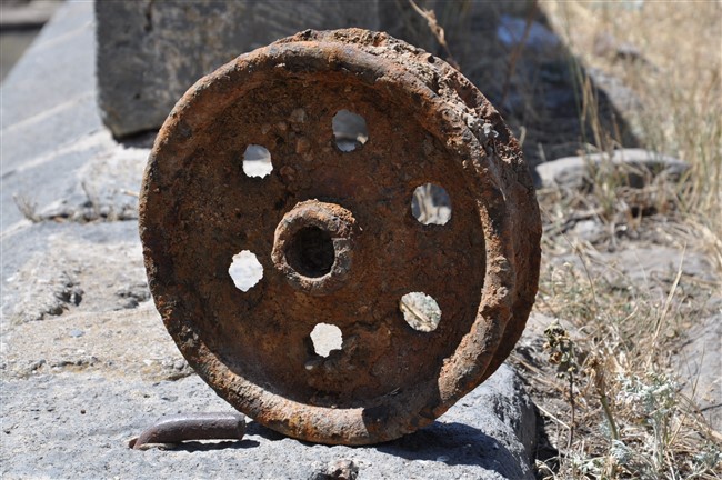 Gazetecilere açıklama yapan Araştırmacı-Yazar, Fotoğraf Sanatçısı Yıldırım Öztürkkan, Çok ağır bir işçilik tarafından yaptırılan bu köprüde, taşın veya ilgili bir malzemenin bir yerden bir yere nakil edilmesi burada bir dekovil hattı oluşturulmuş. Günümüzde bu hattı göremiyorum ama bu dekovilin tekerlerinden bir tanesi onarım çalışması yapılırken gün yüzüne çıktı. Bulunan bu dekovil tekeri ilk bakışta el arabası tekeri gibi görünüyor ancak bu raylı sistem için kurulan dekovil hattının tekeridir ve ağırlığı yaklaşık 25-30 kilogram civarındadır.” dedi.