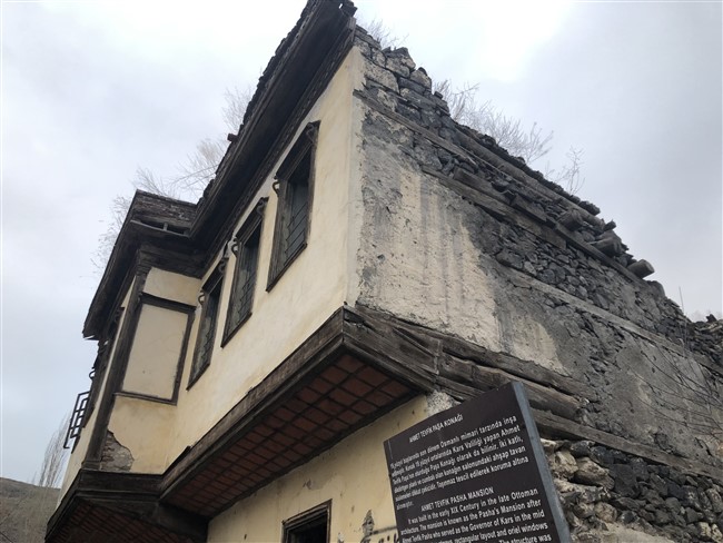 Kars Kalesi'nin eteklerinde, Tarihi Taş Köprü ile Muradiye Hamamı ve Mazlumağa Hamamı'nın olduğu bölgede bulunan ve 19. yüzyılda yapılan tarihi Ahmet Tevfik Paşa Konağı gözler önünde yıkılıyor.