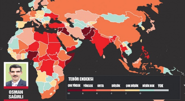 Terör olaylarının ülkeler üzerinde ciddi ekonomik sarsıntılara sebep olduğu belirtilen Küresel Terörizm Endeksi sıralamasında, terörizmden en çok etkilenen ülkeler ölüm sayısına göre şöyle sıralandı: Irak, Afganistan, Nijerya, Suriye, Pakistan, Somali, Hindistan, Yemen, Mısır, Filipinler, Demokratik Kongo Cumhuriyeti ve Türkiye. Geçen yılki raporda 163 ülke içinde 9. sırada olan Türkiye, bu yıl 12. sıraya geriledi.