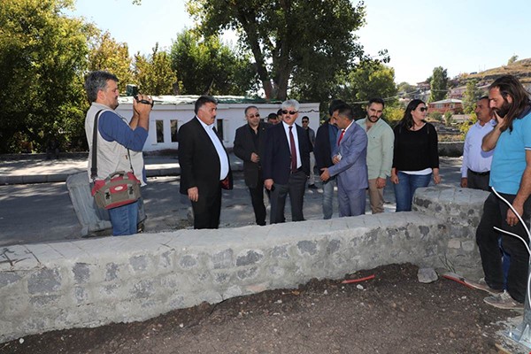 Kars Valisi Rahmi Doğan, Valilik tarafından Evliya Camii çevre düzenleme çalışmaları kapsamında yaptırılan Vali Lala Mustafa Paşa Çeşmesi ile Kars Kalesi altında Kars Çayı kenarına yaptırılan bisiklet parkur alanında incelemelerde bulundu.