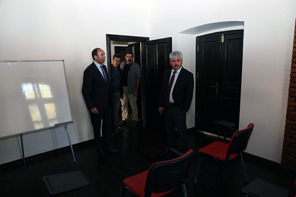 Vali Lala Mustafa Paşa Çeşmesi ve bisiklet parkuru için alanda yapılan çevre düzenlemesi ve diğer çalışmaları yerinde inceleyen Vali Doğan, sonrasında Valilik öncülüğünde hayata geçirilen, sanatsal etkinlik, faaliyetlerin başladığı Kars Kültür ve Sanat Evi’ni ziyaret ederek çalışmalar hakkında bilgi aldı.