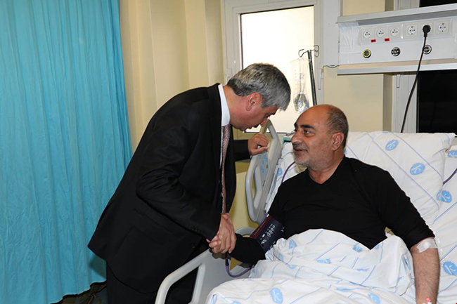 Ziyaretinde; Seyit Ahmet Erdem’in durumu hakkında doktorlarından bilgi alan Vali Doğan, Seyit Ahmet Erdem ile bir süre görüşerek geçmiş olsun dileklerini iletti.