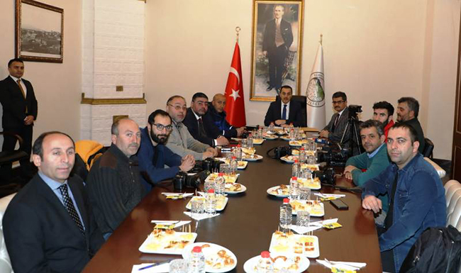 Kars Valisi Türker Öksüz, gazetecilerle bir araya geldiği toplantıda, geride bıraktığımız 2019 yılı içerinde yapılan ve devam eden çalışmalar ile 2020 yılında hayata geçirilecek olan projeleri tek tek sıraladı.