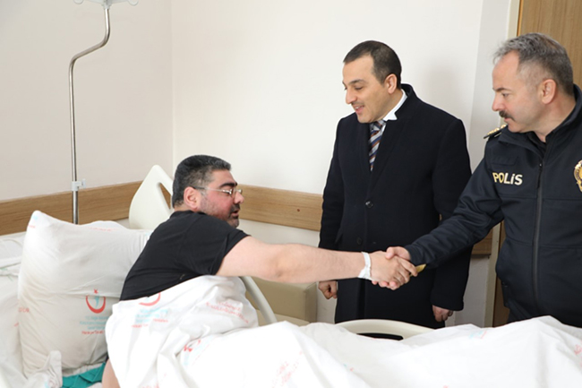 Bir süre Daşdelen ile sohbet eden Vali Öksüz, Emniyet Müdürü Bitirik ve Jandarma Komutanı Kılıç, geçmiş olsun dileklerinde bulundu.