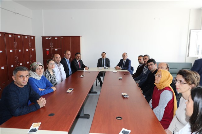 Vali Öksüz, ziyaretinde son olarak öğretmenler ile bir araya gelerek bir toplantı gerçekleştirdi. Toplantıda öğretmenlere hitap eden Vali Öksüz; öğretmen ve öğrencilerimizin ihtiyaçlarını yerinde görmek ve okulumuzun eğitim açısından hangi aşamada olduğunu tespit etmek amacıyla bir araya geldiklerini belirterek, devlet olarak en öncelikli konunun eğitim ve öğretim konusu olduğunu vurguladı.