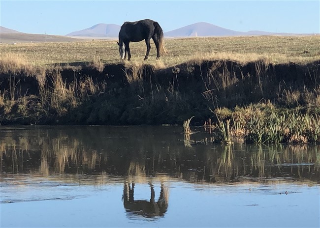 Dikme Köyü’nün yakınlarından geçen Kars Çayı etrafında yiyecek arayan yılkı atları su ihtiyacını da çaydan karşılıyor. Vatandaşların hareketlerinden rahatsız olan atlar koşarak bölgeden uzaklaşıyor. İnsanların kendilerini rahatsız etmediği yerlerde ise güneşin tadını çıkaran atlar yerde yuvarlanarak oyun oynuyor.