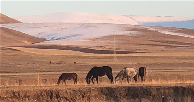 Kars’ta geçtiğimiz günlerde yağan ve güneşli hava ile birlikte eriyen karın ardından yılkı atları da yiyecek bulmak için yerleşim yerlerinin yakınana kadar geldi. Gruplar halinde gezen yılkı atları doğal ortamlarında kameralara yansıdı.