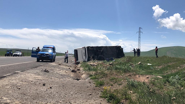 Ardahan’da meydana gelen trafik kazasında yolcu otobüsü devrildi. Kazada biri ağır 6 kişi yaralandı.